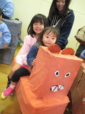 年長組の作品には乗ることもできました。本物の動物園に来たみたい♪