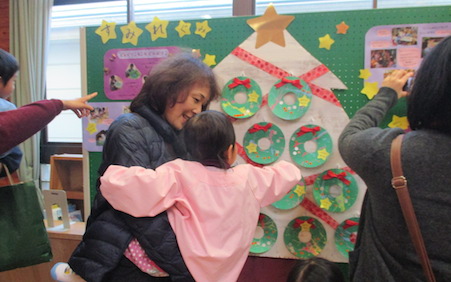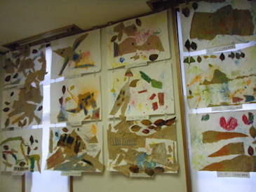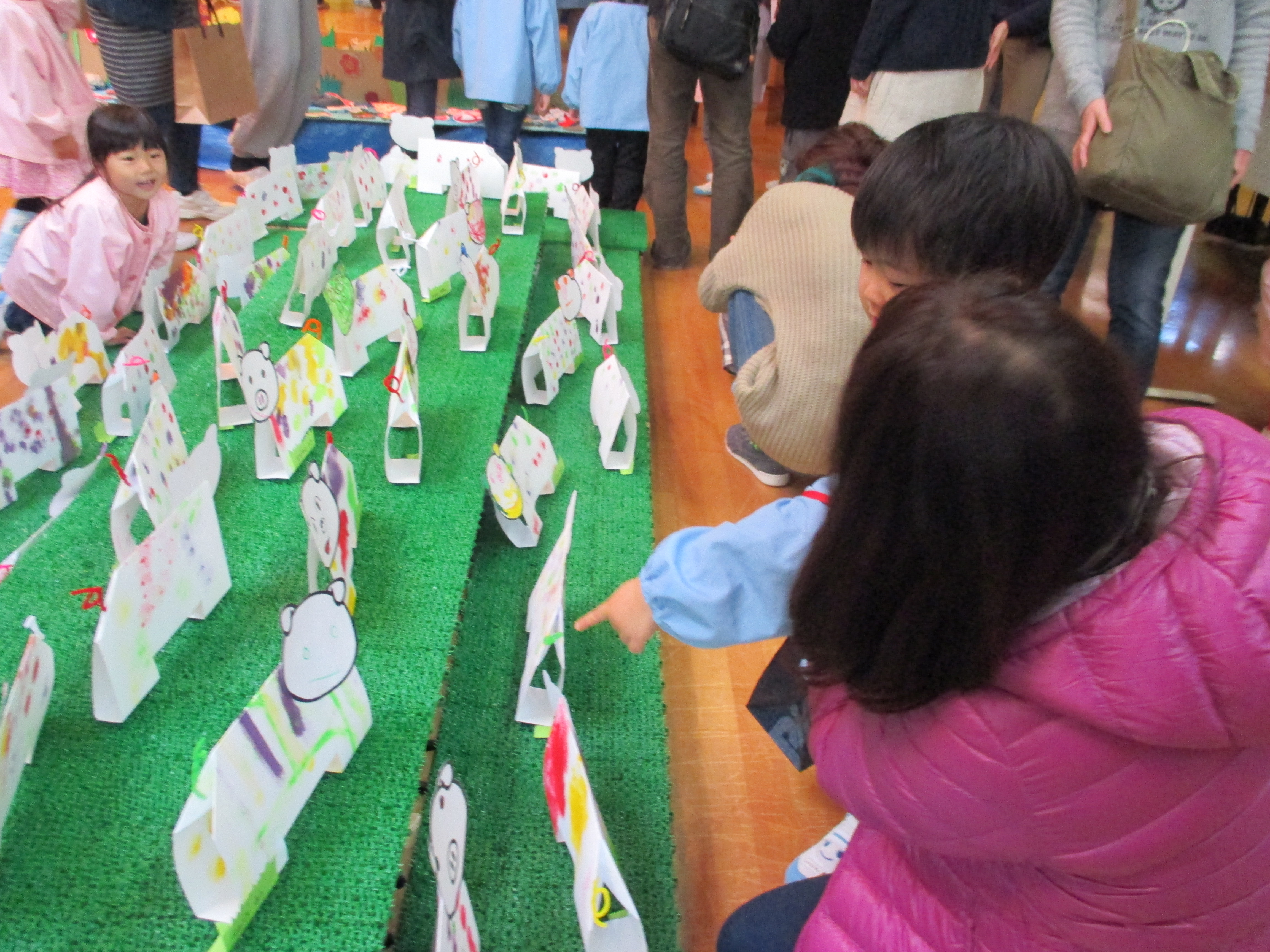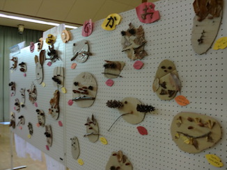 子どもたちの作った作品が廊下や遊戯室にたくさん飾られ、保護者の方と一緒に作品鑑賞を楽しみました。