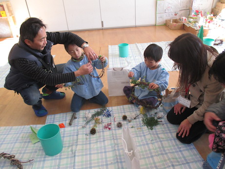今回のワークショップでは、クリスマスツリーとリース作りに挑戦しました。