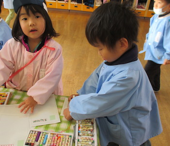 それぞれに好きなことを書いたり、切手を貼ったりしています。