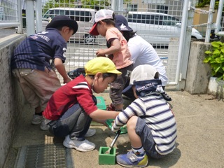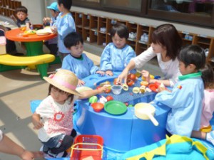 ひまわり組のお友達がおいしいお肉をやいてくれました。
