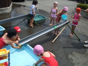あっという間に目の前を流れていくそうめん…。何度も挑戦していきます。