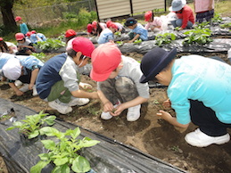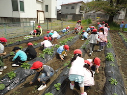 終わった後には、「きれいになったね」「また草抜きにこようね」と話をする子どもたち。収穫を楽しみに、また様子を見に行きたいと思います。
