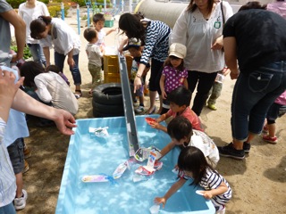 水を流しますと、舟が動き出していきます。