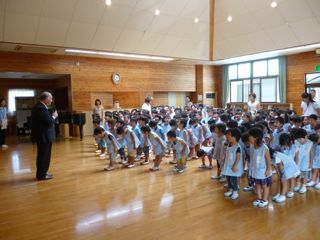 子犬や子猫が絡み付くように、友達同士じゃれ合う姿が目に入りました。元気に始業式に参加しました。