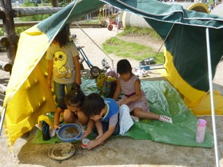 テントを張り、食事つくりのお手伝いをしたのでしょうね。