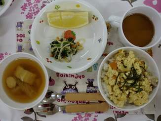今日の給食 6月15日(水) 2016 6/15 ニュース 給食 本日の献立 親子丼・みそ汁・ほうれん草のごま和え・グレープフルーツ ニュース 給食 URLをコピーしました! プール掃除をしました。 欠席状況(感染症) 6月15日(水) コメント コメントする コメントをキャンセルコメント ※ 名前 ※ メール ※ サイト 次回のコメントで使用するためブラウザーに自分の名前、メールアドレス、サイトを保存する。 上に表示された文字を入力してください。 Δ
