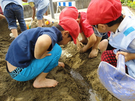 気持ちいいね・・・ 2016 6/24 ニュース 暑い日には砂場で裸足になって遊ぶ子どもたち。 砂場では、川や山を作っています。 「長い川になってきた」 「こっちにも水いれよう!!」 「トンネルを作って水を流そうよ」 砂や水の感触がとても気持ちいいですね。 ニュース URLをコピーしました! 消防署見学 欠席状況(感染症) 6月27日(月) コメント コメントする コメントをキャンセルコメント ※ 名前 ※ メール ※ サイト 次回のコメントで使用するためブラウザーに自分の名前、メールアドレス、サイトを保存する。 上に表示された文字を入力してください。 Δ