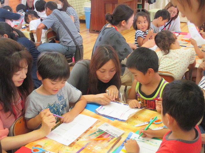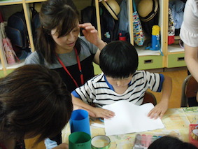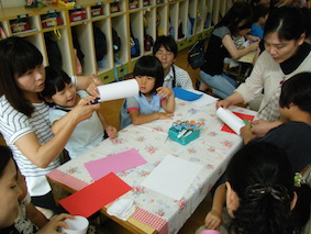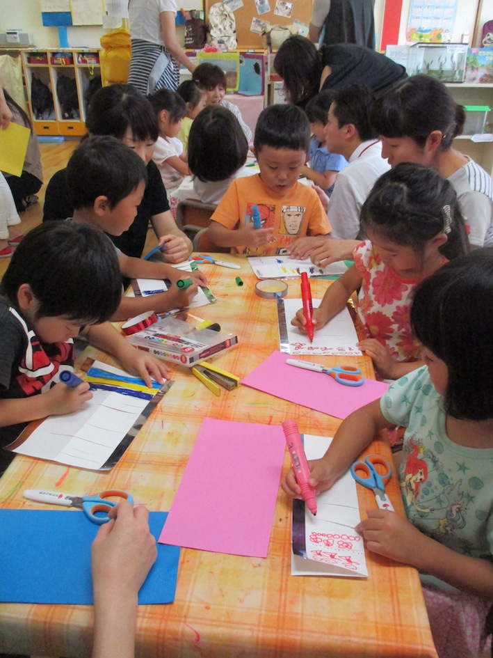 今回の保育参観では、夕涼み会に向けて提灯作りをしました。
