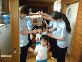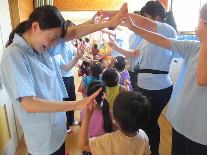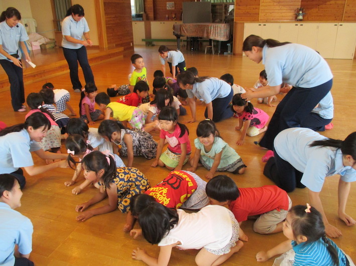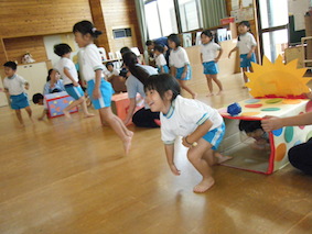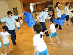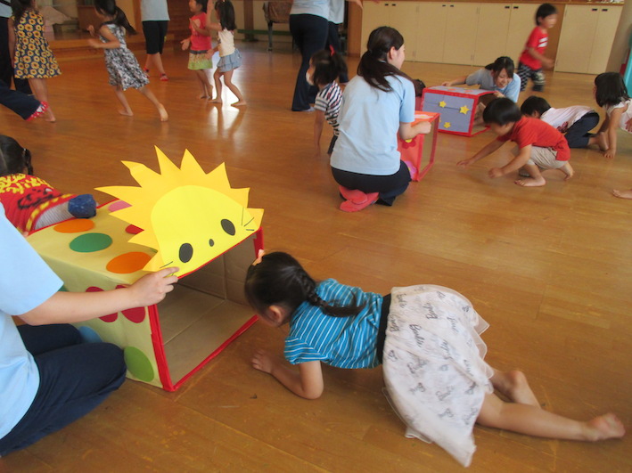 今日は、短大生による身体表現ワークショップに参加しました。短大生と一緒にトンネルをくぐっていろいろな世界にレッツゴー!