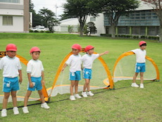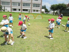 空高くボールを投げキャッチしたり、2人組になってパスし合ったり