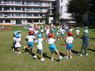 リズムにのって嬉しく心を動かし、子ども達が可愛らしく踊る姿をお見せできることと思います。当日は、衣装を身に付けます。それぞに好きな役を演じます。ライオン キリン トリ シマウマなど。広いフィールドにはカラフルな衣装のよく似合う子ども達でいっぱいになります。