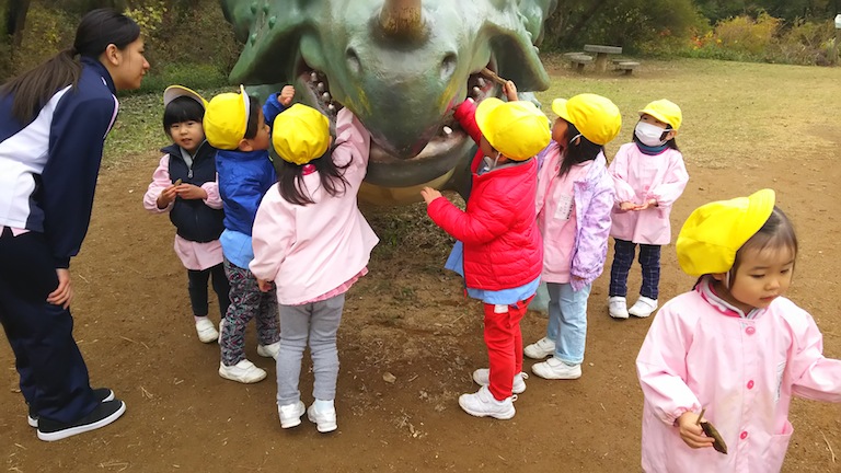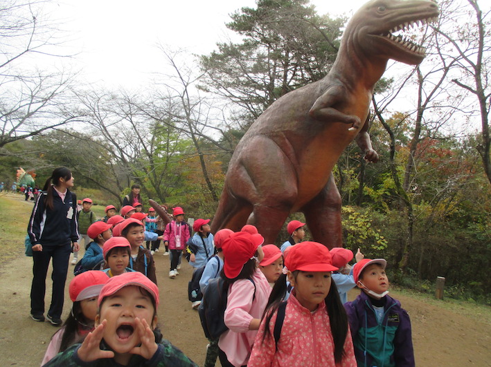「キャー‼️」恐竜に驚いたり食べられちゃうお友達もいました。