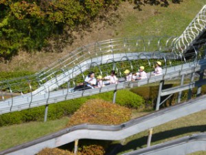 ジェットコースターのようなスピードの早い滑りに歓声が上がっていました。