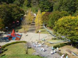 大子広域公園へ移動です。先に公園に到着した年長組は活動的です。長い滑り台を滑りました.