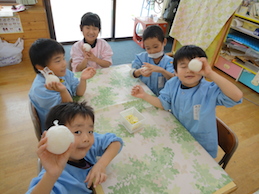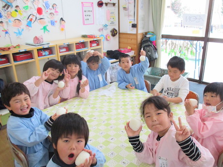 4歳クラスの友達にもおすそわけをしました。「ありがとう」「おいしかった」と言ってもらえて,嬉しく思ったようでした。