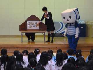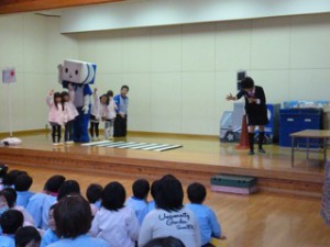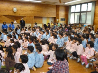 11月6日(火)10時20分。本日はあいにく雨天となり、遊戯室で交通安全教を行いました。