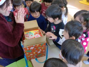 クラスに戻ると、それぞれのお部屋に大きなプレゼントが届いていました♪