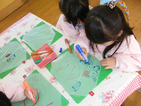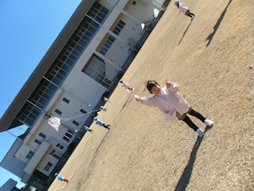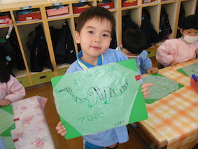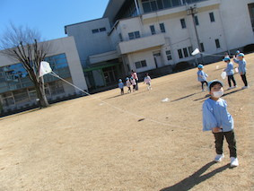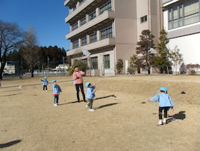 凧揚げをしたよ!(4歳児) 2017 1/13 ニュース 3学期が始まり、クラスではコマ回しやカルタ、福笑いなどお正月遊びを楽しんでいます。 4歳児では、ビニールに好きな絵を描いてオリジナルの凧を作りました。 早速、短大の芝生で凧揚げをしました。 風がちょうど良く吹いていたので走らなくても凧が揚がりました。 元気いっぱい体を動かして、凧揚げを楽しみました☆ ニュース URLをコピーしました! 欠席状況(感染症)1月12日(木) 歯医者さんの話(5歳児) コメント コメントする コメントをキャンセルコメント ※ 名前 ※ メール ※ サイト 次回のコメントで使用するためブラウザーに自分の名前、メールアドレス、サイトを保存する。 上に表示された文字を入力してください。 Δ