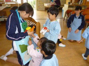 短大生が遊びに来ました 2012 11/29 ニュース 保育科の1年生がエプロンシアターでお話を聞かせてくれました。 エプロンからいろいろな人形やお話が飛び出してくる事に驚いていました。 楽しいひと時でした。 ニュース URLをコピーしました! クッキングデー第2弾 11月30日(金)給食です コメント コメントする コメントをキャンセルコメント ※ 名前 ※ メール ※ サイト 次回のコメントで使用するためブラウザーに自分の名前、メールアドレス、サイトを保存する。 上に表示された文字を入力してください。 Δ