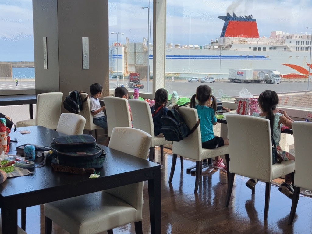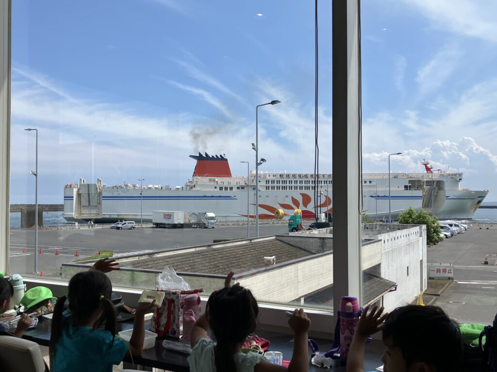 大きな船が港に入ってくるのは圧巻でした!!子どもたちだけでなく、先生たちも大興奮😆
