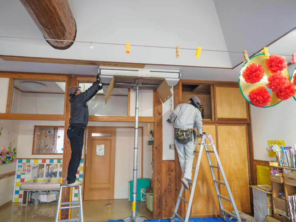 経年劣化により不具合が出てきた保育室のエアコン入替工事を順次実施してきましたが、11月にすべての保育室(5室)の工事が完了しました🌟